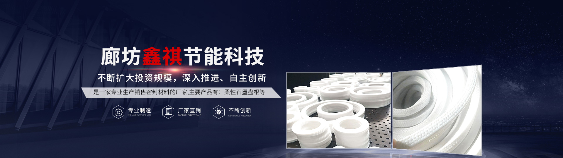 廊坊鑫祺節(jié)能科技有限公司成立于1998年,位于河北省廊坊市大城縣廣安工業(yè)區(qū)。是一家專業(yè)生產(chǎn)銷售密封材料的廠家。主要產(chǎn)品有:柔性石墨盤根,芳綸纖維盤根,碳素纖維盤根,碳素盤根,基本型、內(nèi)外加強(qiáng)型金屬纏繞墊,四氟墊、板、棒、盤根,紫銅墊,鋼包墊,石墨復(fù)合墊,石棉、無石棉制品,碳素盤根,石墨盤根,芳綸盤根,高水基盤根,戈?duì)柈a(chǎn)品等。公司目前旗下有員工300人,年產(chǎn)銷500噸,年銷售收入近3000萬元。公司一貫堅(jiān)持“質(zhì)量率先,用戶至上,優(yōu)質(zhì)服務(wù),信守合同”的宗旨,憑借著高質(zhì)量的產(chǎn)品,良好的信譽(yù),優(yōu)質(zhì)的服務(wù),產(chǎn)品暢銷全國(guó)近三十多個(gè)省、市、自治區(qū)以及遠(yuǎn)銷美國(guó)、俄羅斯等國(guó)家。竭誠(chéng)與國(guó)內(nèi)外商家雙贏合作,共同發(fā)展,共創(chuàng)輝煌!